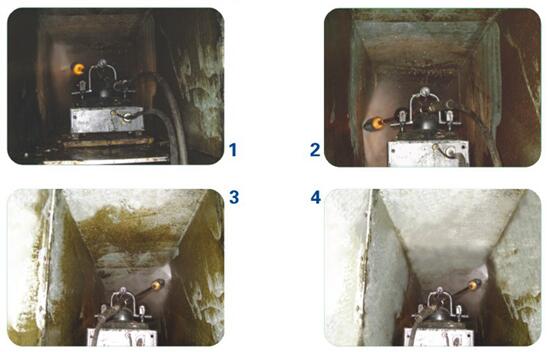 煙道內(nèi)情況復(fù)雜,有些死角人力范圍無法達到,根本無法清洗